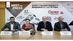 Three four-day international exhibitions on readymade garments for the textile and apparel industry will concurrently open at International Convention City Bashundhara in Dhaka on September 4. The “20th Textech Bangladesh International Expo 2019”, “16th Dhaka International Yarn & Fabric Show 2019-Summer Edition” and “38thDye+Chem Bangladesh 2019 International Expo” will be organised by the Conference and Exhibition Management Services (CEMS)-Global Ltd.