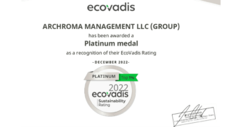Archroma, a global leader in specialty chemicals towards sustainable solutions, today announced the renewal of its EcoVadis “Platinum” status and further improvement of its overall rating.