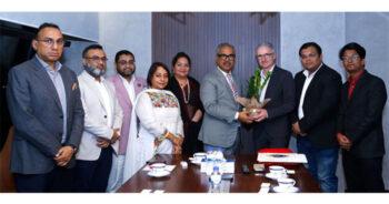 Markus Reichwein, Technology Head of Product Management at Oerlikon Barmag, and Sudipto Mandol, Manager – Sales and Marketing at Oerlikon Textile India, called on BGMEA President Faruque Hassan at BGMEA Complex recently.