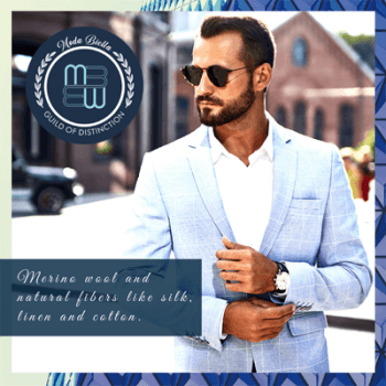 Moda Biella’s fabrics are meticulously woven using lustrous natural fibers, featuring merino fabrics and luxury worsteds in exotic wool blends, with finer micron, finer quality, better handle and drape than before. The brand’s wool comes from the Merino sheep in Australia, New Zealand or Tasmania.