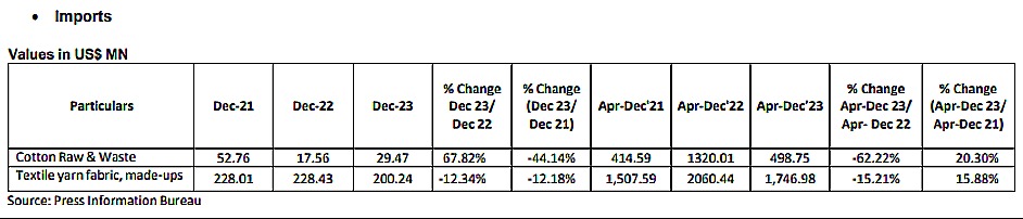 During Dec 23, Indian Textiles Exports registered a growth of 4.25% over the previous year while Apparel Exports registered a degrowth of -12.56% during the same time period. However, as compared to Dec 21, exports of both Textile and Apparel have declined by -32.70% and -11.66% respectively.