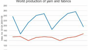 For Q1/2017, estimates indicate an unchanged global yarn production and a rising fabric production. For Q2/2017, the global outlook for yarn production signals a decline and the outlook for global fabric output indicates an unchanged development.