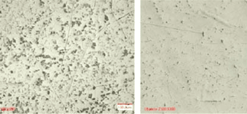 Under the microscope, the significant differences become clearly visible. On the left side the structured surface of the “nanos.” Contrary to this, the right side shows the surface of the standard sinkers with their mirror-like sleekness. The tests were carried out by the “Fraunhofer Institut für Schicht- und Oberflächentechnik” in Braunschweig. The result was different for the nanos. Because of the pieces of gold, the oil film was kept constant even after the one-and-a-half-hour test time. According to the test findings, the surfaces of the nanos “reveal significant differences in friction value and in the danger of wear.”
