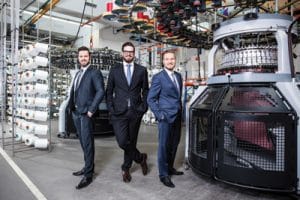 Steiger, explained Sales and Marketing Manager Carlo Corradi, has recently been experiencing success in the field of knitted preforms for composites, and in one project with the Technical University of Dresden, for example, has successfully developed shaped truck component parts for Volvo. It is also working with a notable luggage brand on a range of the first knitted composite suitcases.