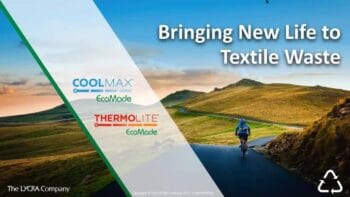 Textile waste represents a substantial sustainability challenge across the textile and apparel industry. Lycra says it is committed to doing its part to help the planet by introducing Coolmax and Thermolite EcoMade technologies made from 100 percent textile waste, which lays the groundwork for a circular system. These fibres are the result of a strategic collaboration between The Lycra Company and Itochu Corporation, a general trading company with strength in consumer-related sectors, including the textile business.