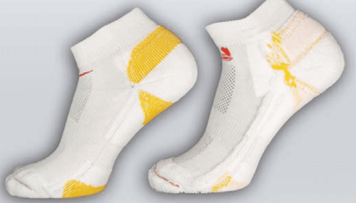 The two fabrics are knitted at the same time and not in sequence, thus saving 50 per cent of the knitting time, the company reports. They are joined at the welt, at the heel and at the toe of the sock, thus avoiding the possibility for the internal layer to slip onto the external layer. The two fabrics are knitted at the same time and not in sequence, thus saving 50 per cent of the knitting time, the company reports. Another interesting possibility of the Twin Layer machine is the production of football sock having a pouch in the inside to host the shin guard. The terry device enables the machine knitting the sandwich terry and the normal terry even in the same sock without any mechanical change.