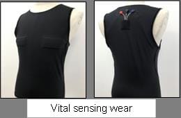 Vital sensing wear: This clothing facilitates sustainable and highly accurate sensing of the heart’s electrical activity, heart rates and activity levels, minimizing the noise generated by contact of the body with sportswear during exercise. It combines the ultrafine fiber NANOFRONT with vital-sign sensing technology, and by simultaneously sensing heart rates and activity levels it can be used in various scenarios including sports team management and the prediction of heatstroke risk.